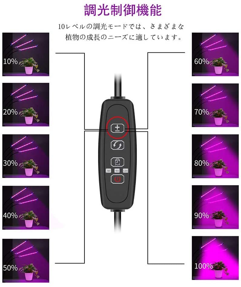 調光制御機能:57個のLED植物成長ビーズ、10段階調光モードでは、さまざまな植物のニーズに応じて、植物の異なるステップの成長を促進する光の強度を調整することができます。