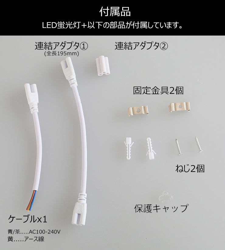 【仕様】 LED植物育成ライト T5 LED蛍光灯 40W形(器具一体型) 定格電圧(周波数):100-240V (50/60Hz) 消費電力:18W LED QTY: 120 units LED Resource: SMD2835 LED-Red(赤)660nm 1200-1500MCD/PCS, LED-Blue(青) 460-463nm Red/Blue: 7:1 全光束:3-4lm カバー:クリア(透明) サイズ:全長(約)1180mm 幅(約)25mm 高さ(約)35mm 重量:190g 高品質、省エネ 1年間製品保証 定格寿命40,000時間以上 取付金具付き 付属品:コネクタ付ケーブル、固定金具、ねじ、連結部品 取り付け方法 1付属のクリップ式固定金具2個をネジ留め、本体を設置する 2付属の電源アダプターを結線して本体の片側に差し込む (電源アダプターの黄色線はアース) 使用上の注意 ※電源配線工事が必要です。