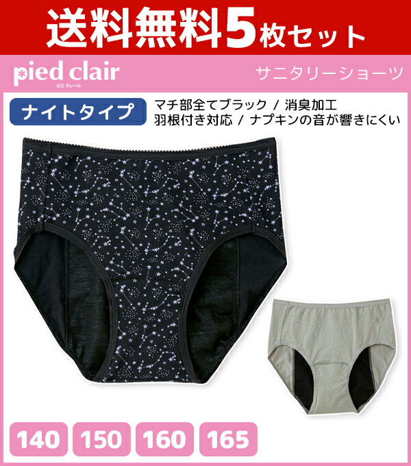 送料無料5枚セット ジュニアレディース pied clair ピエクレール サニタリーショーツ ナイトタイプ グンゼ GUNZE パンツ|下着 ジュニア ショーツ 子供 キッズ 生理 生理用パンツ 生理用ショーツ 生理ショーツ サニタリーパンツ セット 女児ショーツ ティーン 夜用 ティーンズ 詳しく見る
