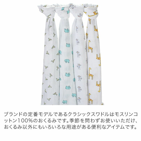 商品名エイデンアンドアネイ【Aden+Anais】おくるみ 4枚セット モスリンコットン クラシックスワドル カラージャングルジャム(2026)、ハートブレーカー(2045)、ロックスター(2046)、ハイシーズ(2055)、ラブバード(2058)、ラブストラック(2061)、リーダーオブザパック(2060)、バードソング(2062)、ペタルブルーム(2067)、カラーポップ(2068)、シーファリング(2071)、トレイルブルーム(2073)、ウェーブリー(2074)、ラブリーレヴェリー(2065)、ナイトスカイレヴェリー(2066)、フォレストファンタジー(2075)、アラウンドザワールド(2076)、ダリア(2079)、ヒアミーロア(2081)、ペイズリー/ティール(2083) サイズ120×120cm 素材モスリンコットン100% 商品について【クラシックスワドル】クラシックスワドルはモスリンコットン100%のおくるみです。