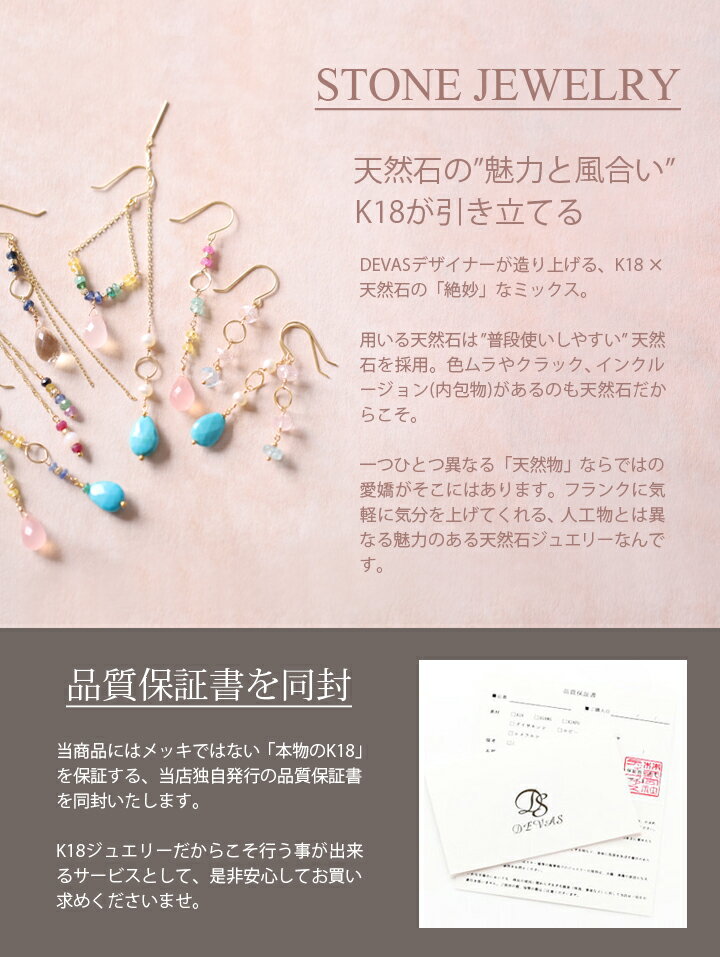 ギフト対応 「 K18 Gemstone Pierce 」 天然石とゴールドパーツを組み合わせた、上品なフックピアス。